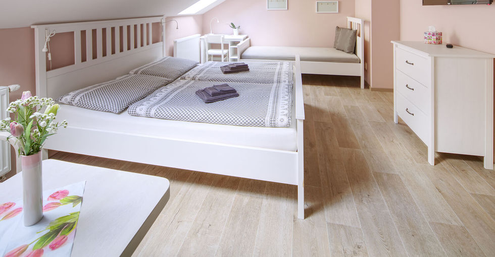Ubytování – útulné ubytování rodinného charakteru v pokojích a apartmánech bývalé zemědělské usedlosti.